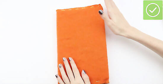 Use a colorful piece of felt to make a book cover. Felt is a strong and durable fabric to use for a book cover. It’s a good cover style for kids’ books or for notebooks that are toted around a lot in a bag. If you can, use wool felt in preference to synthetic felt mixes, as it’s a lot easier to work with. However, wool felt tends to be more expensive too.