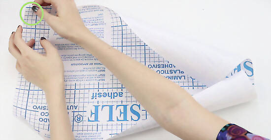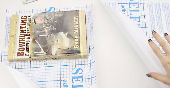 Remove the book from the contact paper. Peel the contact away from its backing if you need to. If you're using sticky contact paper that has a backing, you'll need to peel away the backing to reveal the adhesive side. When you lay the book back down, lay it on the adhesive side. The plastic will stick to the book.