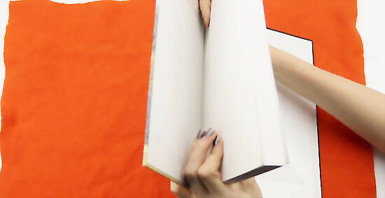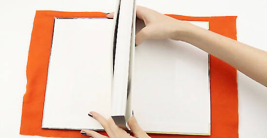 Cut the felt piece out. Lay it down flat on the work surface. You will now have a piece of felt that is slightly larger than your book.