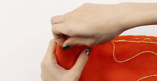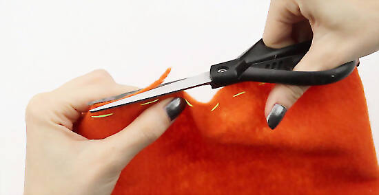 Trim off any excess felt above and below the stitching lines. Leave a small amount of felt above the stitching line, it's important not to trim too closely. Don’t cut too close to the stitching as you risk cutting the thread and unraveling your stitching.