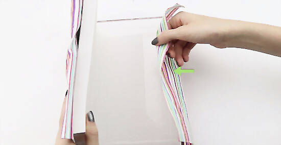 Remove the book from the flaps. You will now have the general shape of your fabric book cover. Fold down any extra fabric that extended passed the vertical edges of the book covers. You want to fold in any extra fabric and pin it to the rest of the fabric.