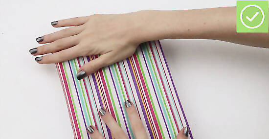 Close the book while keeping the paper folded around the cover. Keep the folded left edge of the paper tightly in position. The paper should stay wrapped snugly around the front cover. You may have to reposition the book so that you don’t rip the paper on the book’s spine. If the paper is too tight, move the book to give it more slack. You want to wrap the book without ripping the paper.