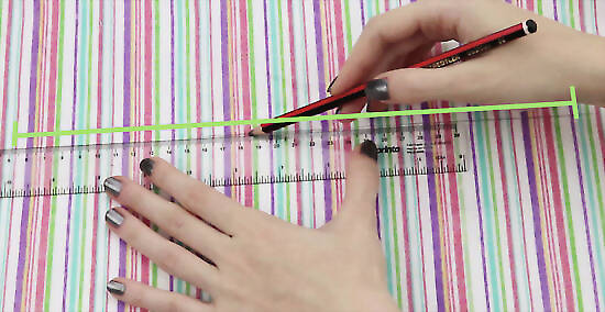 Measure the cover. Place the fabric down on a flat work surface. Center the book on the fabric. Make sure you have plenty of extra fabric. Draw two horizontal lines across the fabric along the top and bottom edges of the book. Extend the edges of the fabric beyond the book to provide adequate space for flaps on each side. For best results, make the flaps at least 2 inches/5cm wide. For larger books, add even more width. Leave a small allowance both above and below the horizontal lines when cutting.