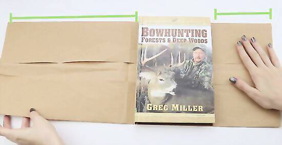 Measure the cover. Place the brown paper down on a flat work surface. Center the book on the paper. If you are using a paper bag, you will want to cut the paper bag open so that it lays flat. Remove any handles as well. Your paper should be bigger than your book so that you have enough of it to wrap around your book and create pockets for the covers to slide into.