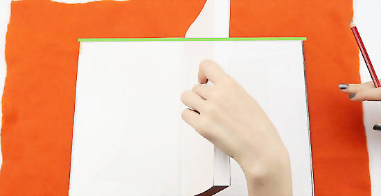 Trace the top and bottom of the book with a fabric pencil. This tracing will tell where to fold the felt for the top and bottom. Don’t trace the vertical edges as these parts will get folded in to create flaps. The extra width that extends past the vertical edges of the covers will turn into the flaps. If using the measurement for the felt provided above, this extra part should measure approximately 2 inches/5cm more each side. Also add a 1/4 inch/6mm edge above and below the marked horizontal lines. This will give you extra felt to cut or fold.