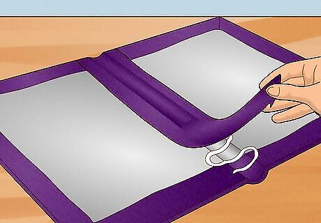 Use glue to attach each of these panels to the inside of the cover. The panel with the elastic will go on the right. Allow the cover to sit overnight or up to 24 hours to be sure that all of the glue has fully dried.