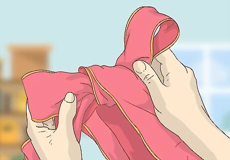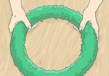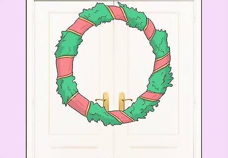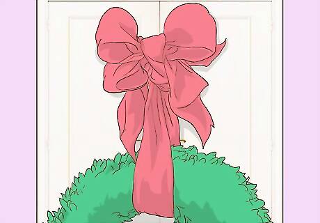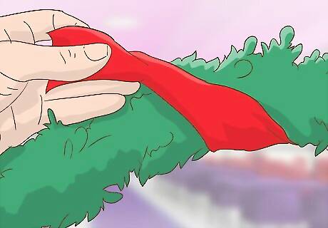 Loop a thick ribbon around your wreath. Cut a long piece of wide ribbon and thread it through the center of your wreath. Tie the ends together into a tight knot to make a loop. For a nicer touch, consider tying the ends into a fancy bow instead. The hanging loop can be as long or as short as you want it to be.