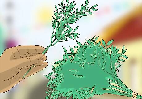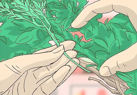 Cut your boxwood into shorter pieces using pruning shears. You don't have to be very precise here, but aim to make the pieces between 8 and 10 inches (20.32 and 25.4 centimeters). It would be a good idea to have a few shorter ones and a few longer ones. For a 12-inch (30.48-centimeter) wreath, cut your boxwood into 4 to 6-inch (10.16 to 15.24-centimeter) sprigs. If the boxwood is dirty, rinse it with cool water first, then pat it dry with a paper towel.
