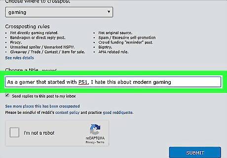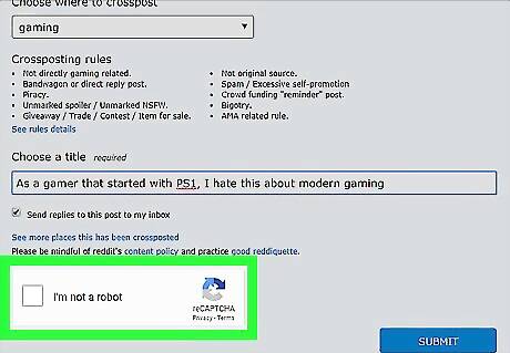 Click the SUBMIT button. This is a blue button in the lower-right corner of the crosspost window. This will publish your crosspost on the selected subreddit.
