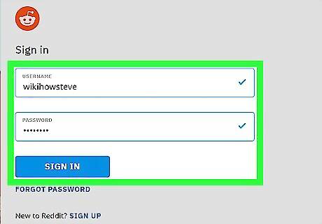 Sign into your account. Enter your username and password into the sign-in form in the upper-right corner of the page, and click the login button. If you're using the new version of Reddit, click the LOG IN button on the top-right corner to open the sign-in form.