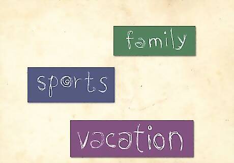 Separate the photos into themes. For example, you can separate them by years, people, sports, vacations and more. Once you have all the photographs arranged into piles, you can decide if you want to concentrate on 1 area or do a scrapbook that includes the whole set.