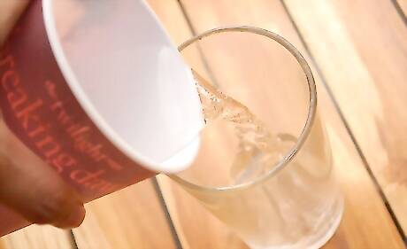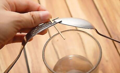 Fill the glass at least half full of liquid. Remember that the entire weight of the silverware will be supported on one single point on the outside edge of the glass. Keep this in mind and make sure the base of the glass is stable enough to sustain the weight.