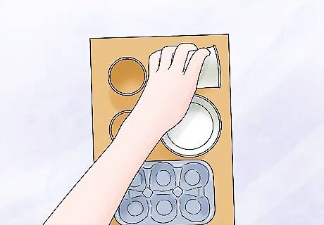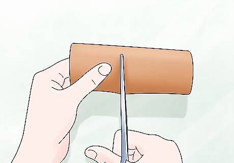 Prepare the materials. Before you attach anything to the base you want to cut your materials to fit your design. Here are some suggestions on how to prepare the materials: For the egg cartons you can cut out each egg holder. Paper towel rolls can be cut in half or quarters to create different levels on the board. Rope should be measured and cut to be your desired length. Cut a hole in the lid or bottom of the plastic containers large enough for your cat's paw to enter. Popsicle sticks can also be cut to achieve different lengths on the board.