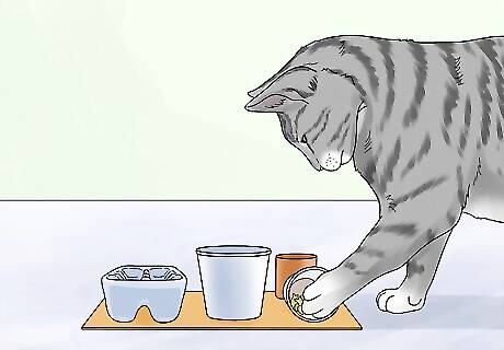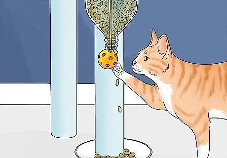 Feed your cat. Once the feeder has been tested it is time to introduce it to your cat. Begin by showing them how when the ball is moved food will come out. Over time your cat should learn how they can receive food from this puzzle.