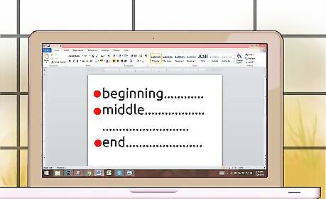 Use monologues at the appropriate time. A play written for the stage or the screen will be a complicated series of dialogs, actions, and silences. Knowing when to allow a monologue to surface in the plot will take some practice. You'll want to have most of the plot essentials and the characters figured out before worrying about monologues. They should emerge organically as the script dictates. Some monologues are used to introduce characters, while some scripts will use monologues to allow a taciturn character to suddenly speak up and change the way the audience feels about them. In general, a good time in the script to use a monologue would be at moments of change, when one character needs to reveal something to another character.