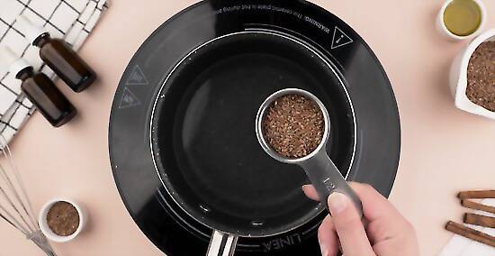 Pour the water and the flax seeds into a pot, bring your stove to low/medium heat and bring your mixture to a boil stirring the flaxseed often, and gently, with the wooden spoon