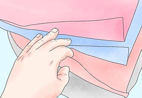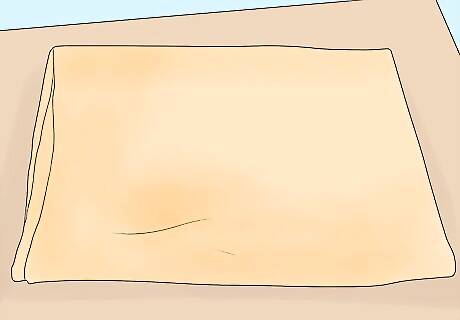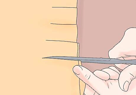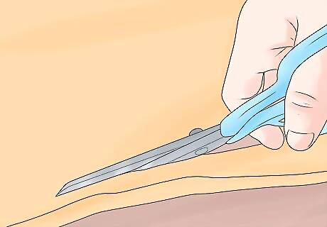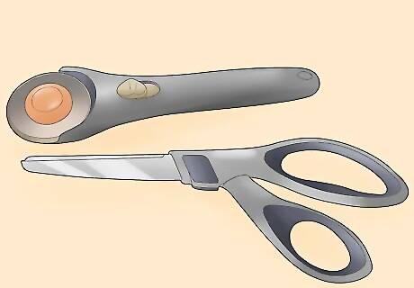 Trim your fabric in line with your measurements, using either a rotary cutter or a sharp pair of fabric scissors. Cut your fabric on a self-healing mat, if possible. A self-healing mat is a common craft supply, made of a foam-like polymer that restores itself after it has been cut. It protects home surfaces from fabric knife or blade cutting.
