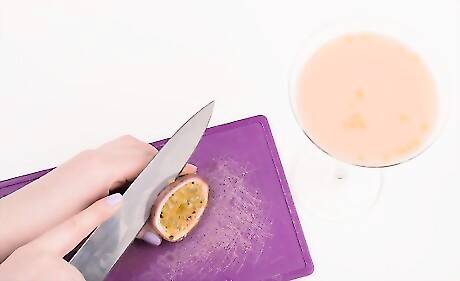 Cut the other passion fruit in half. Place one half on top of the drink and serve.