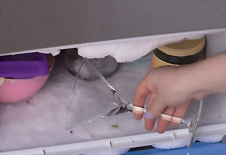 Chill your martini glass. You can either put a few ice cubes with water or place it in the freezer while you make your drink.