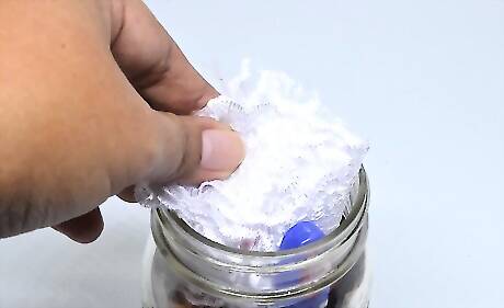Paint the outside of the jar, if desired. Wipe the outside of the jar down with rubbing alcohol first. Paint the jar as desired using spray paint or acrylic craft paint and let it dry. You can even try chalkboard paint for a rustic touch. If you are using chalkboard paint, however, be sure to let it cure in addition to drying. It's not recommended that you paint the inside of the jar. It may give you a smoother finish, but the items inside the jar may scratch the paint off. Apply acrylic paint using a synthetic taklon brush, not a camelhair brush or a boar bristle brush. It will give you a nicer finish. You don't need to wipe down the jar with rubbing alcohol if you arn't painting it.