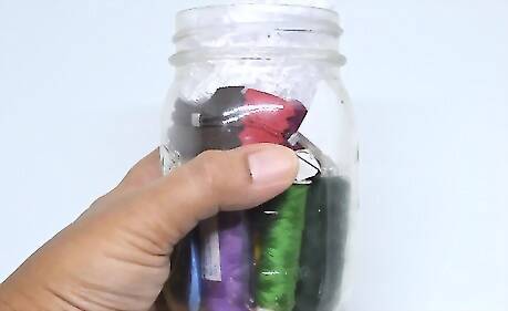 Do not overcrowd your jar. Remember: less is more. Keep the bulk of your sewing supplies in a cabinet or drawer, and the most important items in your kit. If you overcrowd your jar, the kit will start to look messy. Items are also more likely to get broken, damaged, or tangled.