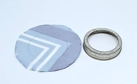 Use the lid to trace and cut a second, larger circle out of fabric. Set the flat, inner lid down on another part of the fabric. This time, trace 1 to 1 ⁄2 inches (2.5 to 3.8 cm) around it, making it bigger. Cut the circle out when you are done. You will be using this circle to make the actual pincushion. Choose a solid or patterned cotton fabric for this.