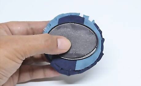 Hot glue the smaller circle to the back of the lid. Coat the gathered edges of the pincushion with hot glue. Quickly press your smaller fabric circle into the glue before it sets; make sure that the right side of the fabric is facing you. This will not only make the inside of the lid look nicer, but it will also help prevent the gathered edges from peeling. If you want to, you can hot glue the 2 lids together. Line the inside of the ring with hot glue, then fit it over the pincushion. You can also use fabric glue for this step. Let the fabric glue dry before moving on, about 10 to 15 minutes.