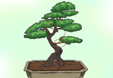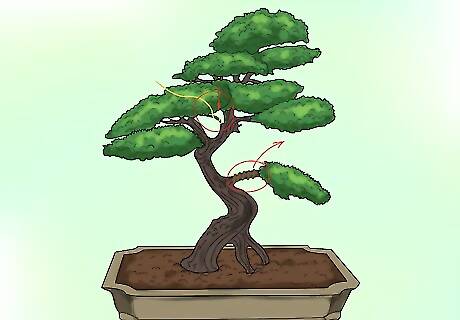 Wire the tree in early to mid summer. Once most growth has ceased, small gauge wire (1/3 of the width of each branch to be wired) should be carefully wrapped around each branch that you want to move into a different position. Don't worry about knocking off a few needles in the process.