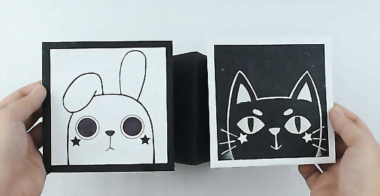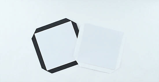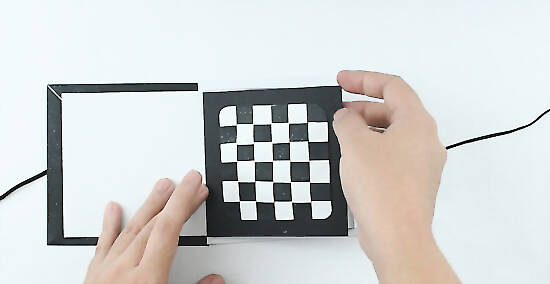 Cut two 4 ⁄2 in (11 cm) squares out of thin cardboard. This is large enough to make a set of covers for 4 in (10 cm) pages. If your pages were a different size, make the cardboard squares ⁄2 inch (1.3 cm) larger instead. For example, if you made 6 in (15 cm) pages, then make the cardboard squares 6 ⁄2 inches (17 cm). Use a metal straight-edge and a craft blade for the most precise finish.