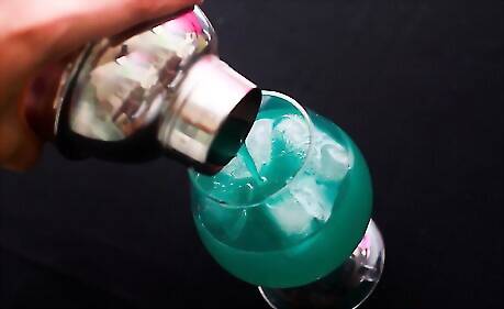 Strain the contents into the highball glass. Pour the tonic water on top of the strained drink.