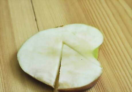 Make a horizontal slice to cut out a wedge from the apple. Use the knives as a guide again and make a horizontal cut until you reach the other cut that you just made. The piece of apple that falls out should look like a wedge.