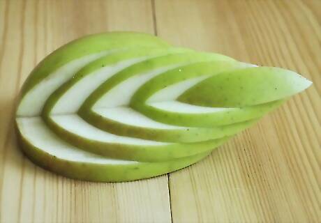 Cut another wing out of your other apple wedge. Repeat the steps using the other large apple wedge that you had cut out of the other side of the apple. Continue repeating the steps until you have two staggered wings.