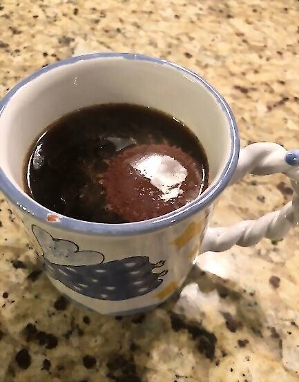 Place one bulletproof-style coffee pod into a brewed cup of coffee and blend with a small frother. Sweeten as desired.