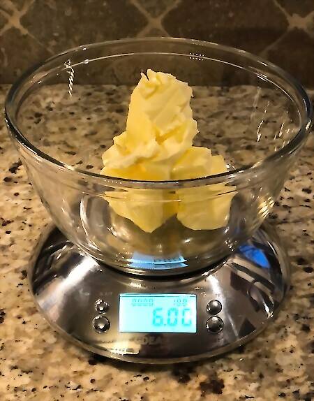 Measure out 6 ounces of grass-fed, unsalted butter with a food scale in a microwave-safe bowl. Another option for measuring is to use sticks of grass-fed, unsalted butter. If you're using sticks of butter, use 1 full stick of butter and one 1/2 stick of butter to make 6 ounces.