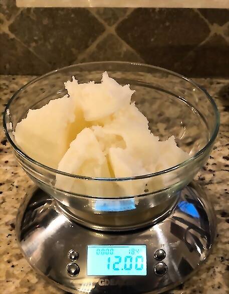 Measure out 12 ounces of pure coconut oil using a food scale in a microwave-safe bowl.