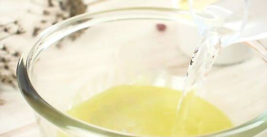 Stir the water into the bowl of lotion ingredients. Slowly pour the water in the bowl while you constantly stir the lotion mixture. This helps incorporate the water so you don't end up with clumps of lotion. If the bowl with the lotion ingredients isn't large enough to pour the water into, transfer the mixture to a bigger bowl before you stir in the water.