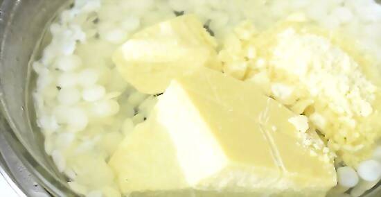 Stir the ingredients in the bowl occasionally until they melt. Use a whisk or heat-proof spoon to stir the beeswax, cocoa butter, and carrier oil so they combine. Continue to heat the mixture until the beeswax and cocoa butter melt. You may need to adjust the burner to prevent the water in the pot from boiling.