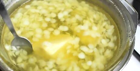 Place a heat-proof bowl on the pot and turn the burner down to medium. Set the bowl on the pot so the bottom of the bowl doesn't touch the simmering water. Using this double boiler method prevents the beeswax and carrier oil from getting too hot.