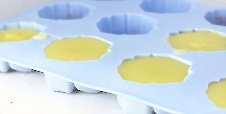 Leave the bars to set for 15 minutes and refrigerate them until they're hard. Let the mixture cool for 15 minutes at room temperature before you move the mold. Then, carefully transfer the mold to the refrigerator and chill them until the lotion bars are solid.