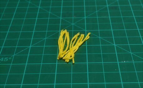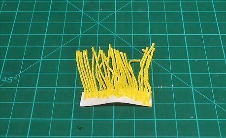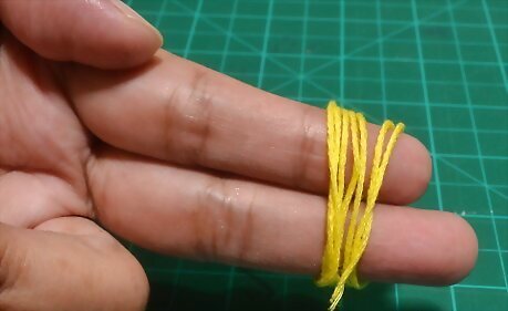 Wrap yellow embroidery thread 9 to 10 times around two fingers. Place the end of your yellow embroidery thread across your index and middle finger. Wrap it 9 to 10 times around those fingers, like making a pompom or tassel. Choose a color that matches your yellow crepe paper.