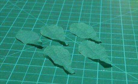 Cut three 3-point leaves. These leaves should be shaped a little like a bird or T-rex footprint, or like three fingers making a W symbol. Do not add tabs to these leaves.