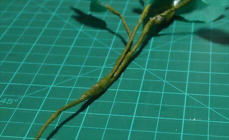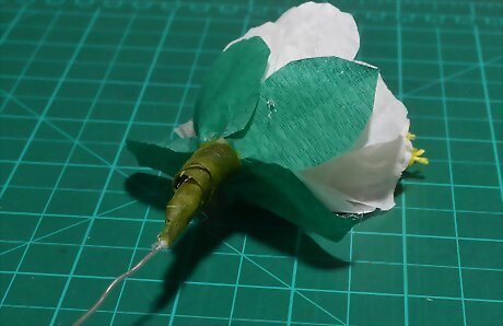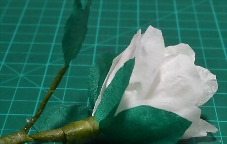 Wrap the top of the main stem with green florist's tape. Start wrapping at the base of the bloom. Continue wrapping the tape, overlapping each layer slightly, for about 4 inches (10.16 centimeters). Tear off the tape, and leave the bottom of the stem intact.
