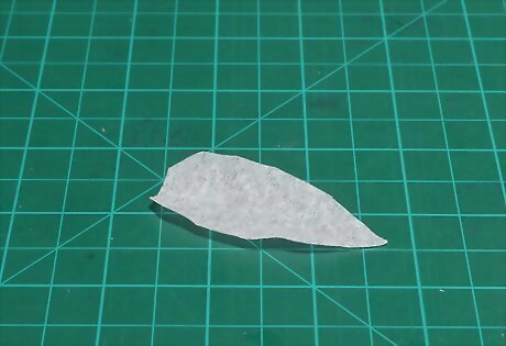 Cut 5 small leaf shapes out of green paper. Make them skinny and oval shaped, with pointed tips. To make the leaves easier to secure to the stem, add a small tab at the bottom of each one.