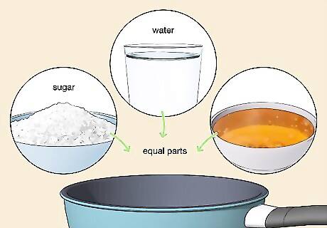Mix together equal volume parts of sugar, water and golden syrup in a saucepan.