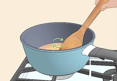 Place on the heat and bring to the boil. Stir continuously until it thickens. Take care not to overheat the mixture. Don't let it smoke.
