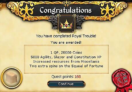 Get your approval rating up. To make the most money, have your subjects at 100% approval with you. To do this either fish on the docks, cut down the trees, mine some coal, or rake some weeds. All resources you collect go to the workers which make them happy. Once they are at 100% approval then you can stop.Get 99 Fletching on RuneScape Step 2.jpg Do not kill peasants or steal from stalls, these reduce your approval rating by 3% and 5% respectively. Raking is by far the fastest to do this, but you have to wait for the weeds to regrow, mining is the second fastest, but chopping trees and fishing you can do AFK.Make Money Using Miscellania in Runescape Step 3Bullet3.jpg You get no items from doing these tasks and only 1 exp each something you get.