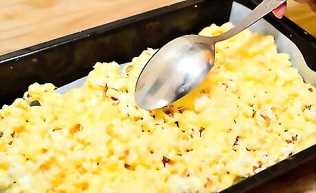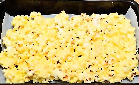 Transfer the popcorn mixture to a lined baking sheet. Spread the mixture out evenly.