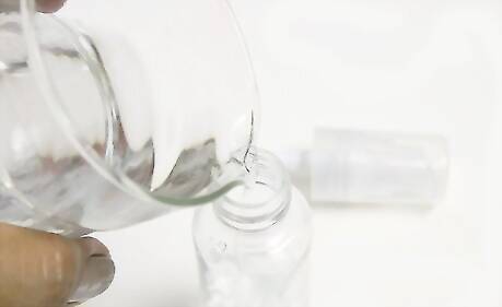Grab a small, empty, and clean spray bottle and gently pour the scented flower water into it. Be sure there are no flower or leaf bits left.