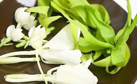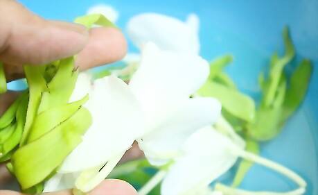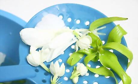 Take the flower petals out of the water to prepare for pouring the water. Make sure that it's the scent you want it to be.