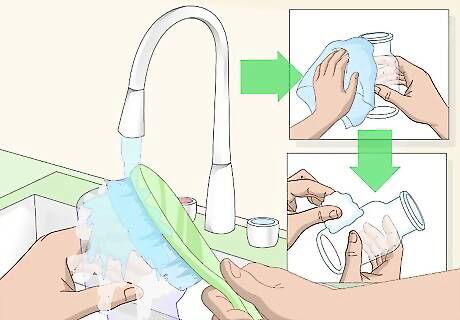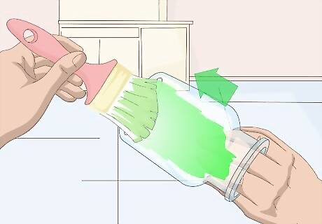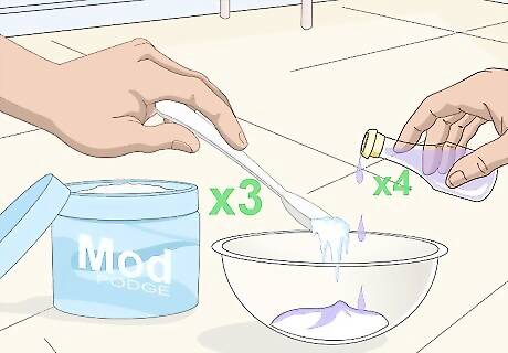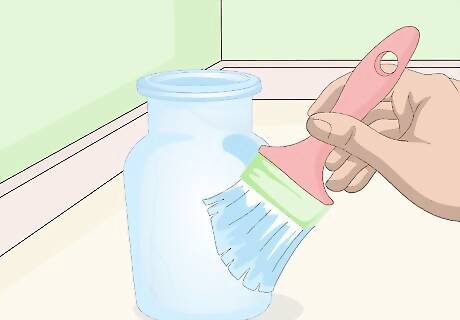 Mix 3 tablespoons (45 milliliters) of Mod Podge with a 1 to 4 drops of food coloring in a small bowl. The most popular colors of sea glass are blue, green, and turquoise. You can also skip the food coloring to get white sea glass. There are no rules for sea glass, however, so you can use any color you want. If you can't find Mod Podge, or any other type of decoupage glue, you can make your own by mixing 3 parts white school glue with 1 part water. Try mixing food coloring colors. 3 drops of blue food coloring and 1 drop of green will give you a nice, ocean color. Consider adding a drop of dish soap. It will help make the glass look even more frosted.